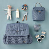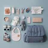 席捲全美的後背包熱銷款式,因時尚外表及強大的收納功能,深受媽咪們喜愛。Levy後背包擁有獨特的U型拉鍊開口,寬敞全開後,可將內容物一覽無遺,內外共有9個收納層,讓媽咪及寶寶的物品都可整齊排列,好拿好整理;包蓋內層特別設計網狀拉鍊袋,讓物品一目瞭然、一眼就能找到所需物品;寬版雙肩背帶置有透氣軟墊,就算久背也不會造成肩膀負擔。深具魅力的莫蘭迪霧藍是時尚的新寵兒,淡雅柔和又富有辨識度的色調可以搭配你任何風格的裝扮,不論你的寶貝是男孩還是女孩都非常適合。