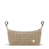 新研發的加厚防潑水尼龍不同於使用在HAPP包包的布料,不僅能讓推車置物袋更強韌,表面也能更好擦拭,搭配著經典HAPP的標誌性人字形花紋,透過細緻的立體縫合手法,呈現出類似編織的3D絎縫效果,使袋體紮實、挺立。