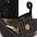 HAPP時尚奢華的黑色,面料帶有緞面光澤感,搭配金色的五金細節,呈現低調細緻的現代品味。